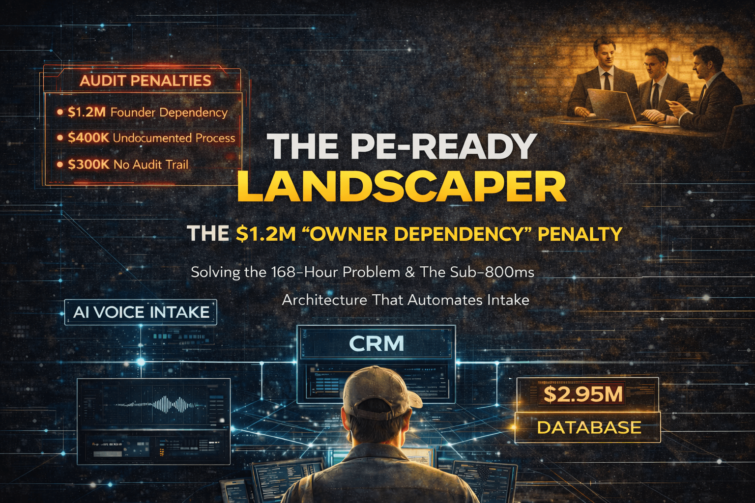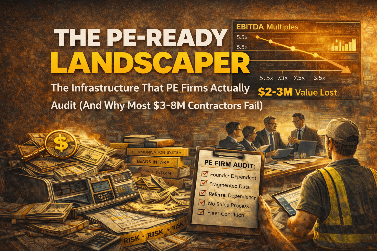 The Problem: Private Equity firms apply a "Key Man Risk" penalty to landscape contractors where the owner handles intake.